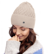 Czapka zimowa damska, wełniana 50% z polarem, Kaoma, beżowa, 56-59 cm