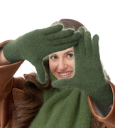 Rękawiczki damskie z angory, zielone ciemne, M/L