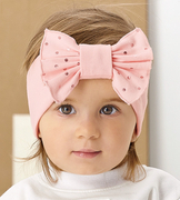 Opaska dla dziewczynki, bawełniana na głowę z kokardą, pudrowa, 46-49 cm