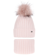 Zimowa czapka i komin dla dziewczynki, Wilma, róż blady, 46-48 cm