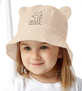 Kapelusz bawełniany dla dziewczynki na lato z uszkami, wiązany, Peabea, 48-50 cm