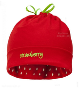 Czapka dla niemowlaka, czerwona, dwustronna, Truskawka, 44-47 cm
