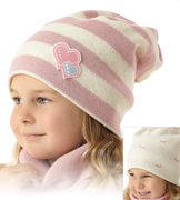 Czapka i komin dla dziewczynki, komplet zimowy, Lussy, blady róż, 50-52 cm