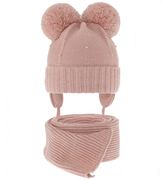 Komplet zimowy, czapka i szalik dla dziewczynki, Bifien, róż brudny, 50-53 cm
