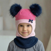 ( ilość produktów: 1367 )Czapka kominiarka dla dziewczynki, dwa pompony, róż+granat, Kajsa, 46-49 cm
