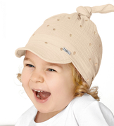Czapka/chustka z daszkiem, dla dziewczynki, muślinowa, Manise, beżowa, 42-50 cm