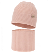 Czapka zimowa i komin dla dziewczynki, Lovilet, brudny róż, 52-56 cm