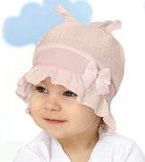 Kapelusz/czapka dla dziewczynki, muślin na lato, Delia, różowy, 50-52 cm