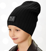 Czapka dla dziewczynki, dzianinowa, czarna, True Colors, 50-54 cm