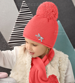 ( ilość produktów: 1608 )Czapka i szalik dla dziewczynki, komplet Rabije, koralowy, 46-50 cm