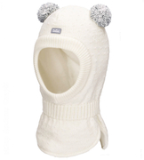 Czapka merino dla dziewczynki, zimowa z pomponami, Kamino, kremowa, 44-46 cm