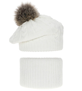 Beret i komin dla dziewczynki, komplet zimowy, Fokki, biały, 52-55 cm