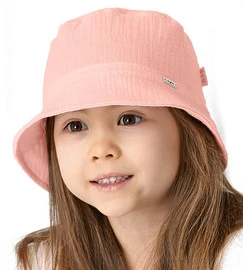 Kapelusz muślinowy dla dziewczynki, brzoskwiniowy róż, Aranda, 56-57 cm