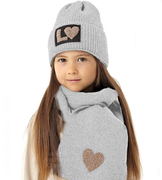 Komplet zimowy dla dziewczynki: czapka i szalik, Elwira, beżowy, 52-56 cm