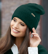 Czapka zimowa damska, wełniana, Berbra, zielony butelkowy, 54-56 cm