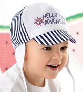 Czapka z daszkiem dla chłopca, wiązana, biały+granat, Hello Adventure, 48-50 cm