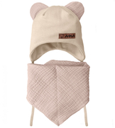 Komplet niemowlęcy, czapeczka i chustka muślinowa, Amisiio, beżowy, 38-40 cm