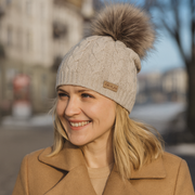 Czapka zimowa damska, merino 50%, Fibia, beżowa (02), 56-60cm