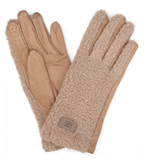 Rękawiczki damskie dotykowe, baranek, brązowe jasne, S/M
