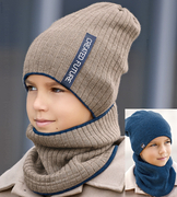 Czapka i komin dla chłopca, Potrei, granatowy melanż + bordowy, 52-56 cm