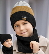 Komplet zimowy dla dziewczynki: czapka i szalik, Elwira, czarny, 52-56 cm