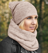 Komplet zimowy Benita, damska czapka i komin, beżowy melanż, 55-57 cm