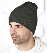Oliwkowa czapka zimowa męska w prążek, Varon, rozm. 56-59cm