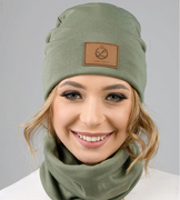Czapka i komin damski, komplet jesienny/wiosenny, Valliana, oliwkowy, 55-57 cm