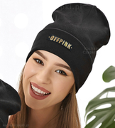 Czarna czapka damska, młodzieżowa Frida, prążek, czarny, 54-56 cm