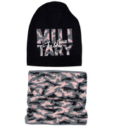 Czapka i chusta zimowa dla dziewczyny, MissM, czarny + róż, 52-56cm