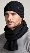 Komplet męski zimowy z wełną merino i polarem, czapka i szal, czarny, 56-58 cm