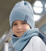 Komplet jesienno-zimowy dla chłopca, czapka i komin, Nuoro, niebieski, 46-50 cm