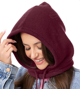 Komin z kapturem damski, kominiarka/kaptur zimowy wełniany, Ruanna, bordowy, 55-60 cm