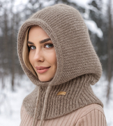 Komin z kapturem damski, kominiarka/kaptur zimowy wełniany, Ruanna, brązowy, 55-60 cm
