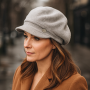 Kaszkiet damski zimowy, wełna/angora/wiskoza, Nassau, szary, 55-58 cm