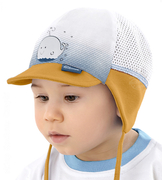 Czapka niemowlęca na lato Balene, biały + musztarda, rozm. 39-41 cm