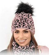 ( ilość produktów: 1638 )Czapka zimowa z pomponem, damska, panterka Paraiso, alpaka, różowy, 55-58 cm