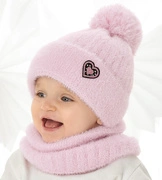Czapka i komin dla dziewczynki, zimowy komplet, Ivanga, różowy, 46-48 cm
