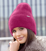 Czapka zimowa, damska, Fluffy, angora, ciemny róż, 55-57 cm