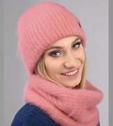 Czapka i komin damski, zimowy komplet, Eteser, pudrowy róż, 55-57 cm