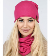Czapka i komin damski, komplet wiosenny-jesienny, Mirandi, róż amarant, 55-57 cm
