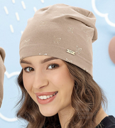 Czapka damska wiosenna/jesienna, bawełniana, beżowa, Aonang, 54-56 cm