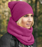 Komplet zimowy, czapka damska smerfetka z kominem, Benita, róż fuksja (9), 55-57