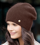 Czapka zimowa damska z angorą, Kristana, czekoladowy, 55-58 cm