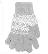 Ciepłe rękawiczki dotykowe do ekranów, R153, jasny szary+biały, 12-14 lat