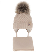 Czapka zimowa i szalik dla dziewczynki, Eliea, beżowy, 42-44 cm