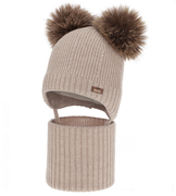 Czapka z pomponem i komin dla dziewczynki na zimę, Merlina, beżowy, 52-55 cm