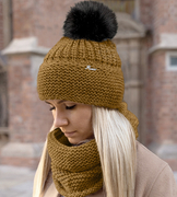 Czapka z pomponem i komin damski zimowy, Mauricia, musztardowy, 55-57 cm
