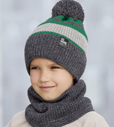 ( ilość produktów: 888 )Czapka i komin dla chłopca, Potrei, grafit + zielony, 52-56 cm