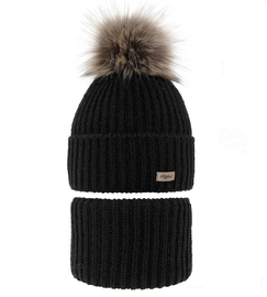Czapka i chusta zimowa, dla dziewczynki, Angelia, czarny, 50-54 cm